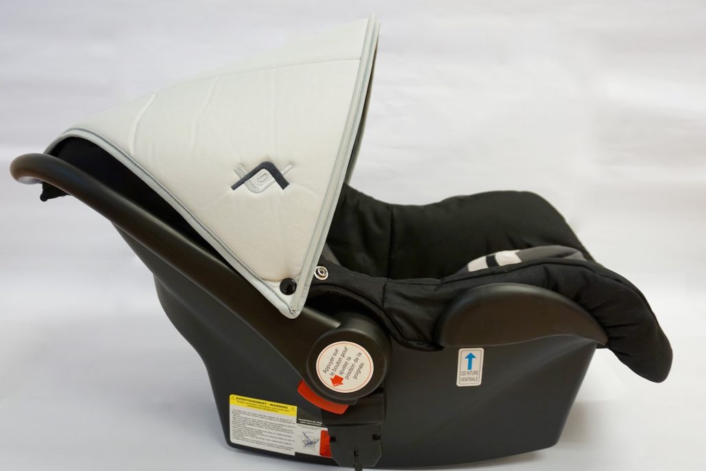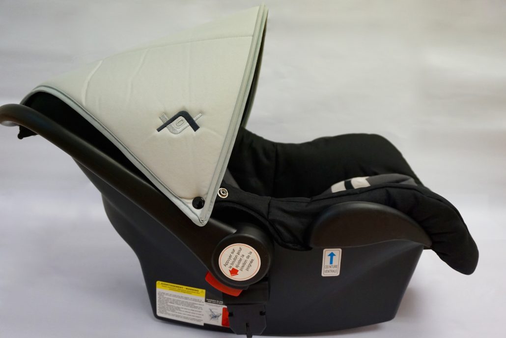 - Integrated sun canopy on car seat (removable)